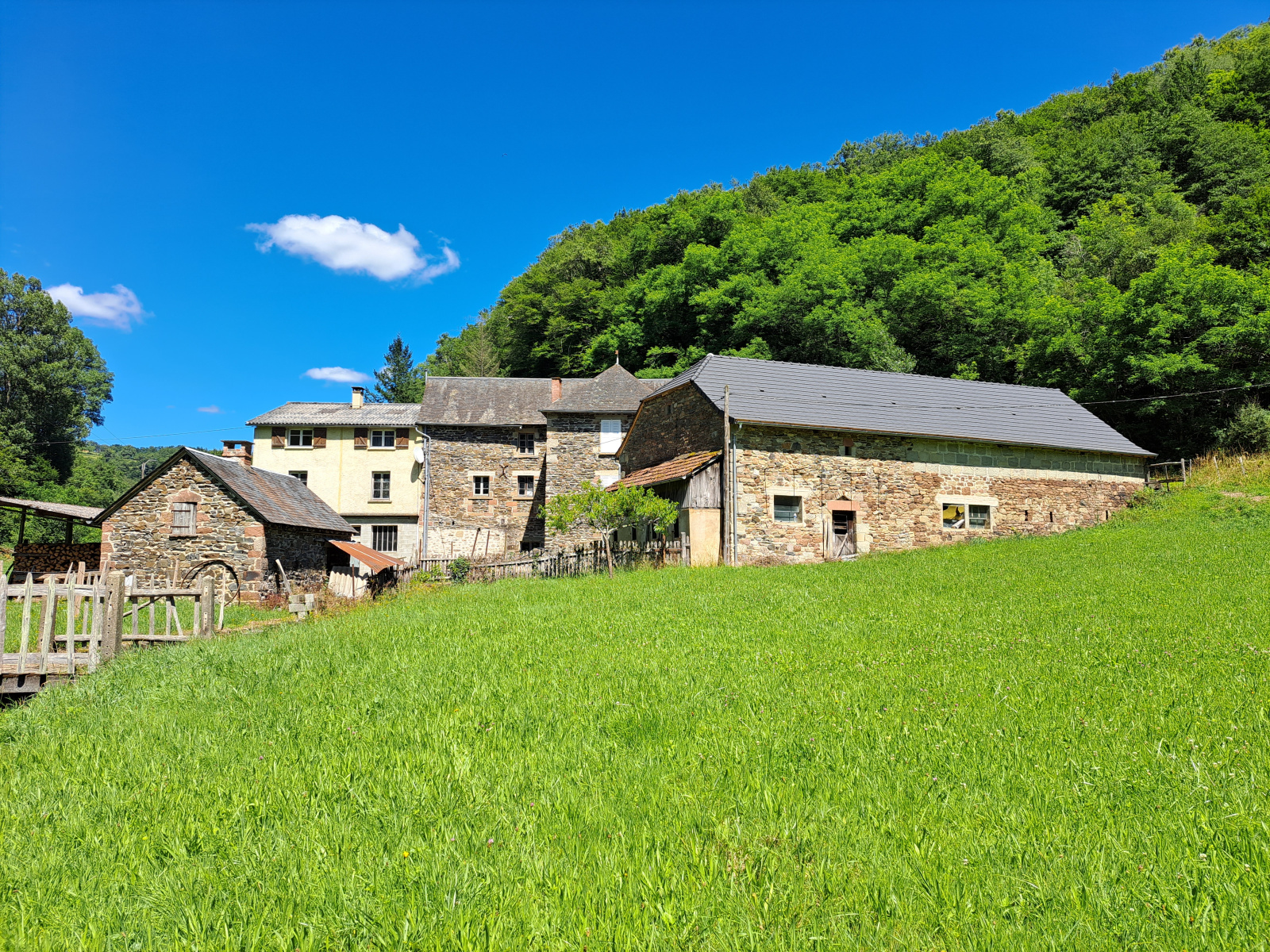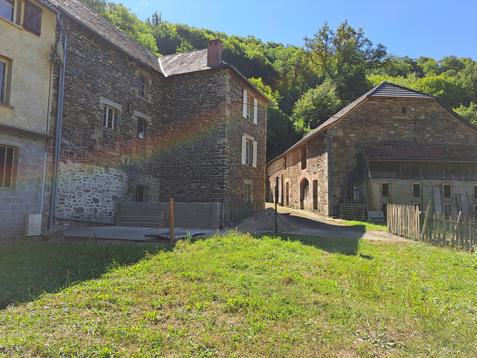 -VENDU- Proche BRIVE, au coeur d'un terrain plat 1 hectare Ensemble immobilier : Ancien moulin. Une maison ancienne en pierres toiture ardoises, 3 chambres 92 m2 habitables. Une grande grange toiture rénovée, Dépendance vaste surface de stockage et un appartement avec quatre pièces. Assainissement individuel neuf.